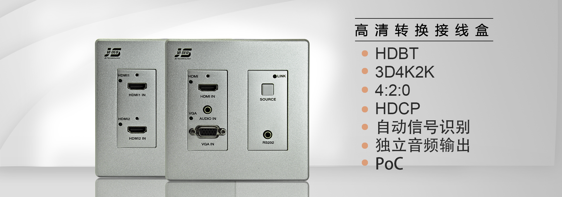 某集團總部辦公樓歷經兩年的室內裝修、弱電施工,終于在疫情緩解的6月正式交付;2年前在設備選型中,金視JS-WP302HD(帶有高清轉換式墻面插座)成為此項目選定品牌及型號,總部辦公樓中共70余間大小會議室,共使用130套金視產品;金視JS-302HD墻面插座,內置模數轉換,能將普通的VGA信號轉換成HDMI信號輸出,自帶音頻解嵌,能夠適應現在不同信號輸出接口的筆記本接駁(VGA/HDMI),同時具