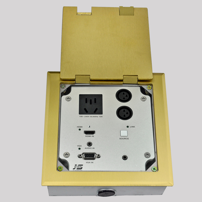 ? ? ? JS-DC401HD可藏式接線盒是一款帶高清轉換的適合地面安裝接線盒,采用高性能專業轉換芯片,將VGA+AUDIO、HDMI、信號轉換成高清格式的HDMI信號輸出,VGA支持分辨率640*480 至1920*1080P或1920*1200,用戶可以通過面板上的 按鍵來選擇切換信號.? ? ? JS-DC401HD地面接線盒可永