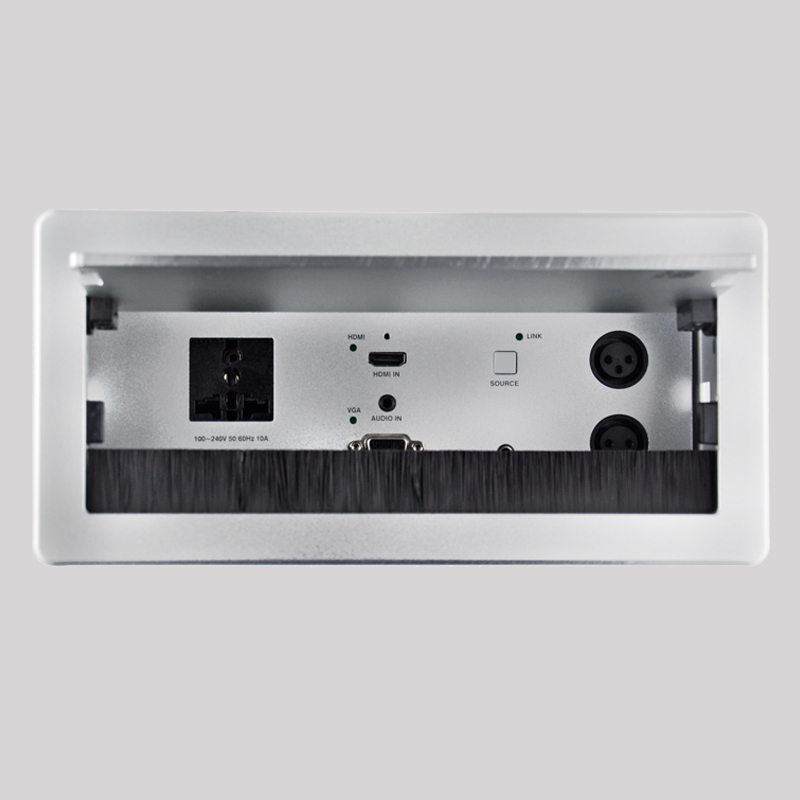 JS-Z300HD可藏式接線盒是一款帶高清轉換及長距離傳輸的適合桌面安裝的掀蓋式接線盒,它上端連接的VGA、音頻、HDMI信號可通過單根類網線輸出高清視頻信號、音頻信號、傳輸距離70M,安裝布線便利;JS-Z300HD采用了全數字式零壓縮技術,實現了視頻圖像點對點以及音頻的完美傳輸。最高支持1920x1080P 60Hz信號;支持HDCP解碼(選配),可接藍光播放器,具有高可靠性和卓越的高分辨率圖