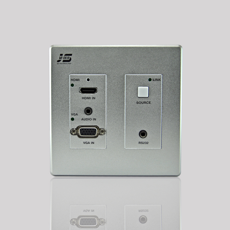 JS-U170HD 可藏式接線盒是一款帶高清轉換及長距離傳輸的適合桌面安裝的滑蓋式接線盒,它前端連接的 VGA、音頻、HDMI 信號可通過單根 6 類網線輸出高清視頻信號、音頻信號、傳輸距離 70M,安裝布線便利;JS-U170HD 采用了全數字式零壓縮技術,實現了視頻圖像點對點以及音頻的完美傳輸。最高支持 1920x1080P 60Hz 信號;支持HDCP 解碼(選配),可接藍光播放器,具有高可