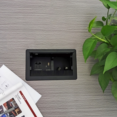 JS-Z401自收式接線盒提供了一個(gè)整潔、緊湊、簡單的連接解決方案,接線盒采用掀蓋式結(jié)構(gòu)設(shè)計(jì),使用時(shí)掀起內(nèi)面板,各種線纜及接口展現(xiàn)出來;線纜采用自收式設(shè)計(jì),使用時(shí)直接拉出線纜連接后即可使用,使用完畢線纜可自動(dòng)收回接線盒內(nèi),實(shí)現(xiàn)了開會(huì)簡單入手、閉會(huì)就走,使整個(gè)會(huì)議桌面整潔、有序。