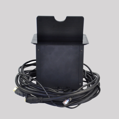 JS-4系列可藏式接線盒提供了一個整潔、緊湊、簡單的鏈接解決方案。4系列接線盒使用時只需掀起內面板,隱藏在內的線纜展露出來,抽拉出線纜連接號誰被后即可使用,使用完畢后把線纜放回盒內,閉合面板,各種接口隱藏起來,隱藏后的接線盒與平臺保持水平。